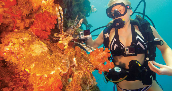 - Provides color correction while capturing footage in green water at depths of 15' to 70' (4.5m to 21.3m)