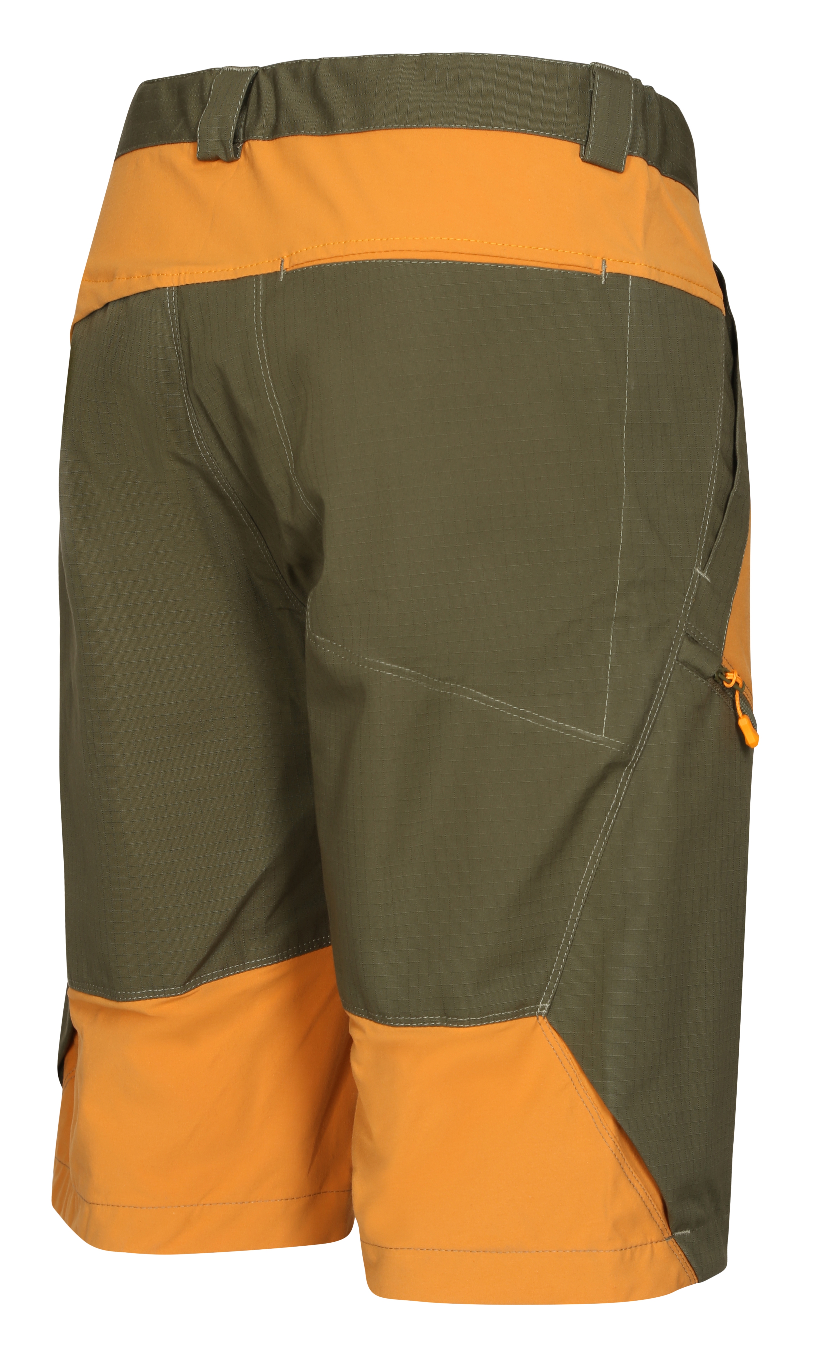 Reinforced panels on the back and thighs protect the fabric from abrasion, ensuring long-term durability. The smart pocket system includes a large zippered cargo pocket on the thigh, two front slash pockets, and one rear zipped pocket, providing plenty of storage space. A rear loop is also included for carrying keys or attaching a carabiner.