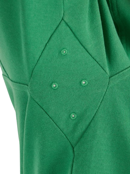 - Embroidered eyelets at underarms for venting