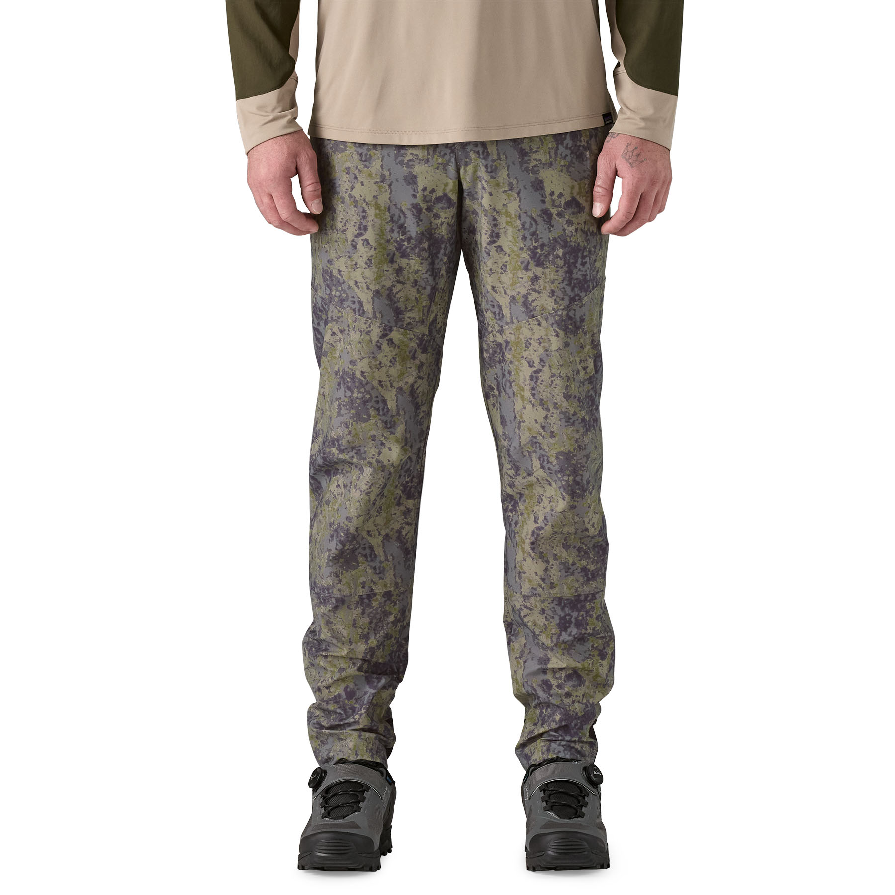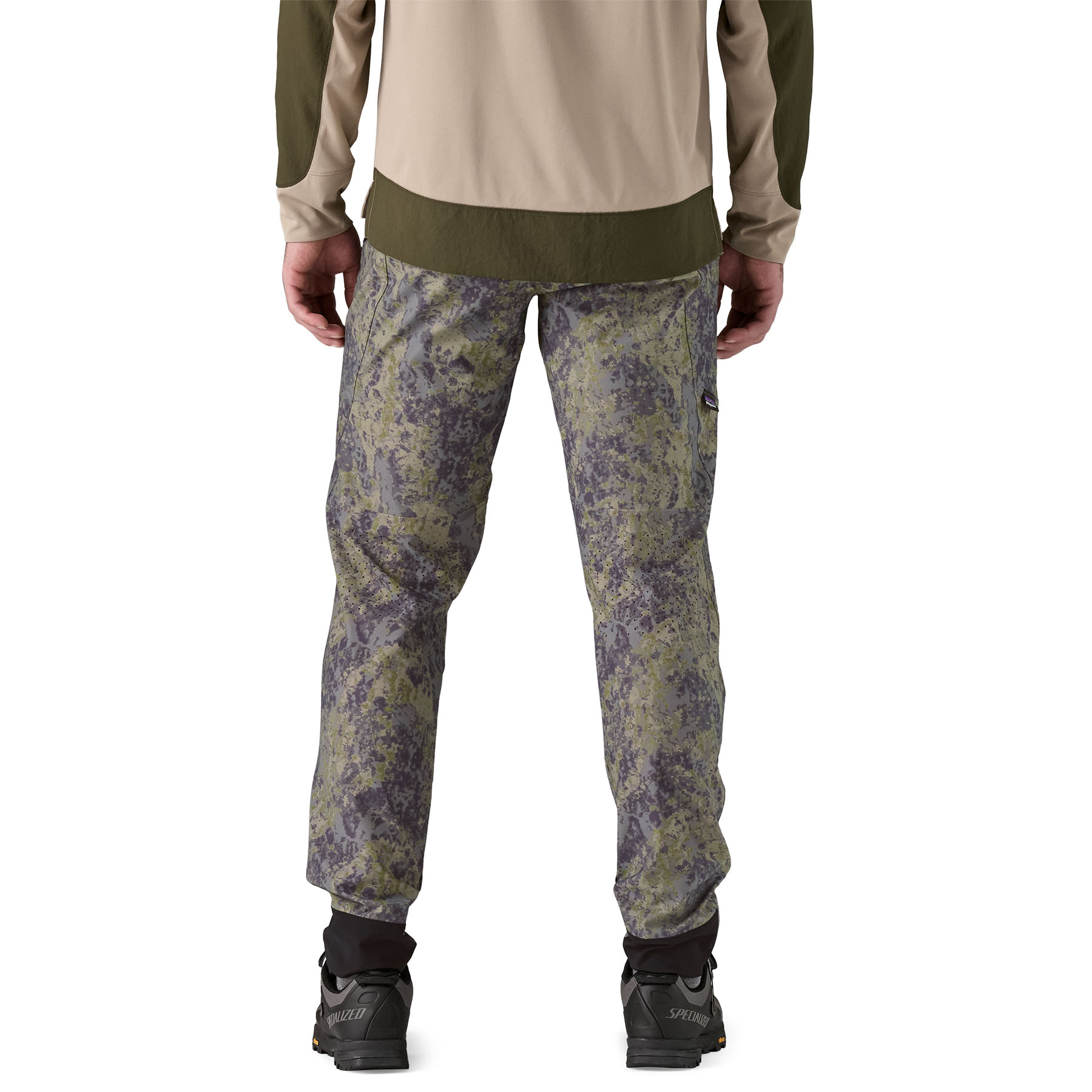 Low-profile, zipper-free fly and elastic waistband minimize interference with pack hip belts for an unrestrictive, chafe-free fit