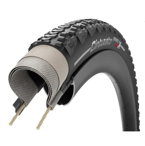 From the success of the Cinturato Gravel RC, the first ever gravel-racing specific tyre, we developed an even more reinforced version: the Cinturato Gravel RC X. This model features the new Techwall X Gravel, a 60tpi fabric casing structure extended past the tread line, with also an additional bead-to-bead protection layer. Keeping the characteristic tread design of the RC models, the Cinturato Gravel RC X is designed for gravel-racing on rough surfaces.