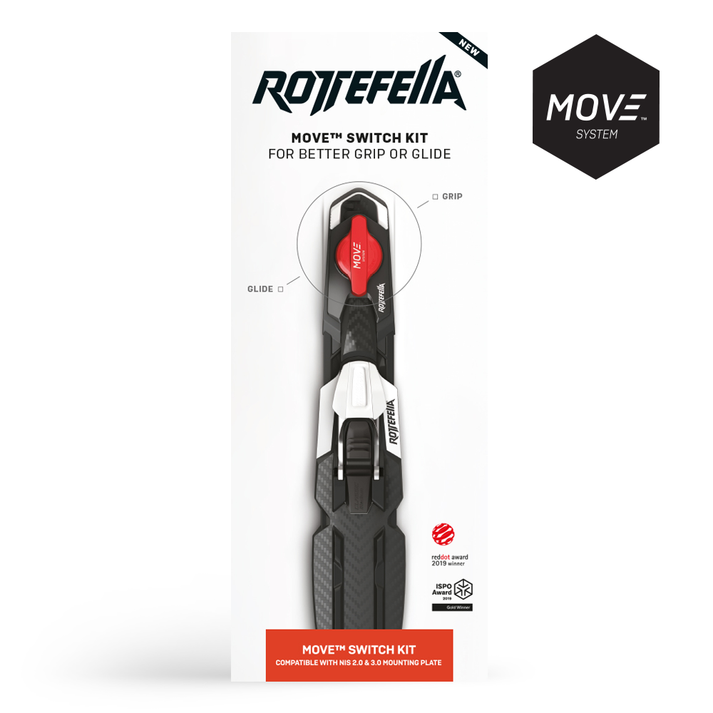 Rottefella Move Switch KIT for NIS 2.0 & 3.0 provides you with better grip and glide by turning the MOVE switch. Move the bindings without taking off your skis - just switch! With a bit of practice, you can even do this at speed. Move the binding forward for increased grip and backward for better glide. Perfect for wax skis and perfect for skin skis. Rottefella MOVE™ Switch is approved by FIS and can be used in all competitions. Rottefella MOVE Switch Kit for NIS 2.0 & 3.0 fits all skis with NIS 2.0 and 3.0 mounting plate.