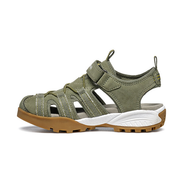MOJITO SANDAL KID sandal version of the bestseller Mojito, with upper made in suede and canvas. Closed toe cap for more protection and anatomical footbed.