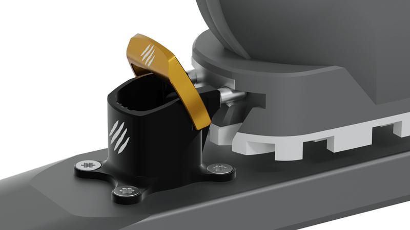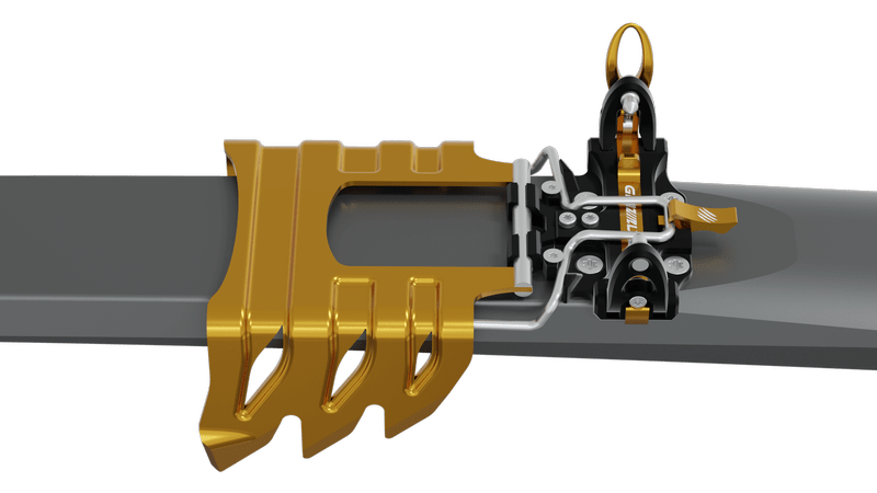 Toe of binding offers a comfortable and simple GRIZZLY FIX locking system. GRIZZLY FLEX makes it possible to adjust pins spacing to enable the use of the most common ski touring boots on the market. GRIZZLY STEP situated on the safety spring on the toe of binding improves precision of positioning ski boot while clipping into GRIZZLY.SKI binding. Toe of binding is ready to mount ski crampon adapter (to be ordered separately).